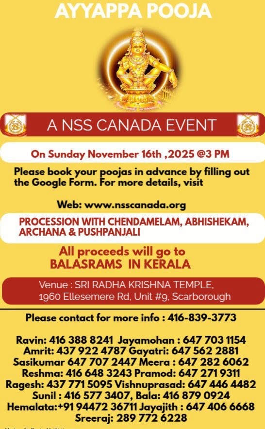 2. To uphold and reflect the ideals as enumerated by the founders of NSS for uplifting the welfare of Nair community of Canada